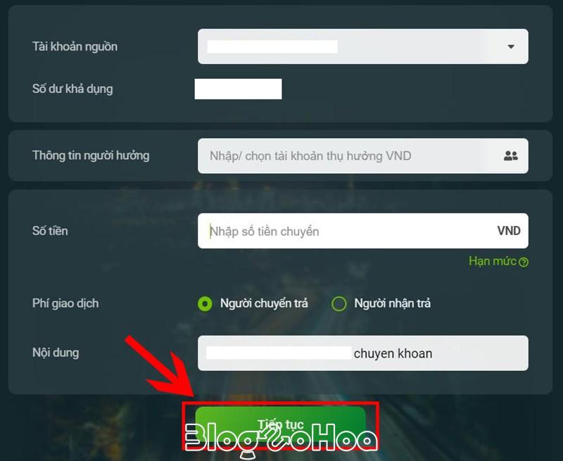 Bước 7: Chọn Phí giao dịch sẽ do người chuyển/ người nhận trả.