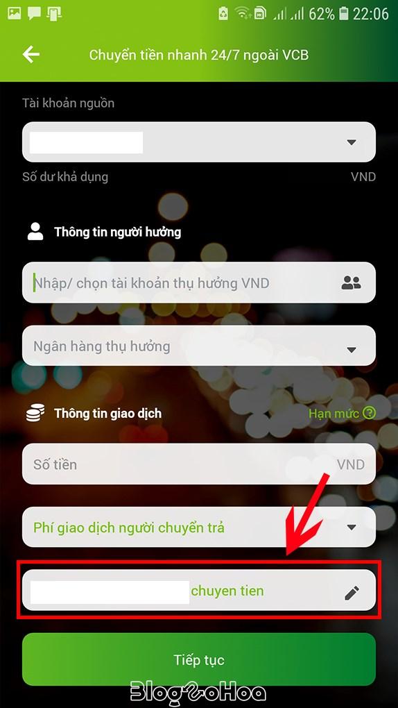 Bước 8: Nhập Nội dung chuyển tiền nếu bạn muốn.